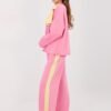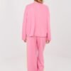 Stylish women’s casual tracksuit set is a perfect proposal for everyday wear. The combination of comfort with trendy details makes the set perfect for daily activities, walks, or casual meetings. The set consists of a long-sleeved sweatshirt with a classic round neckline and long pants with wide legs. The smooth pattern emphasizes the universal character of the set, making it easy to match with different accessories. The sweatshirt is decorated with an eye-catching contrasting bow on the front, adding a feminine and subtly elegant accent to the whole look. The high-waisted pants beautifully shape the waist, and the elastic waistband ensures a comfortable fit to the silhouette. Additional advantages are practical side pockets and side stripes running along the legs, giving a sporty character and visually slimming the legs. The set is made of a pleasant to the touch blend of polyester, viscose, and elastane material is soft, elastic, and resistant to creases, ensuring comfort throughout the day. This is a comfortable and feminine set that combines sporty freedom with trendy details.