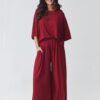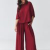 Stylish women’s set combining comfort and modern elegance is the perfect choice for women who appreciate freedom of movement and timeless design. The set consists of a loose blouse with a wide cut and trousers with wide legs, creating a harmonious and fashionable styling for many occasions. The loose-fitting blouse beautifully drapes on the silhouette, providing comfort throughout the day. The wide sleeves add lightness and emphasize the modern character of the design. High-waisted trousers visually elongate the legs, and the elastic waist ensures a perfect fit. Wide legs give the styling an elegant, casual expression. This women’s set will work perfectly as an elegant everyday outfit, as well as a styling for business meetings, family celebrations, or outings with friends. Thanks to its versatile design, you can wear it together or mix and match the pieces with other items of clothing, creating various stylings.