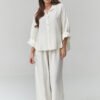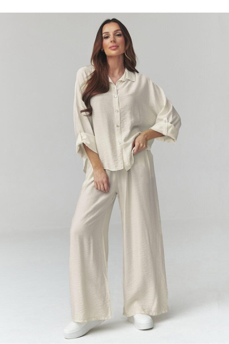 Stylish women’s set in fashionable shades is the perfect proposal for spring and summer. The set consists of a loose button-down shirt and wide pants with an elastic waist, which guarantees maximum comfort and freedom of movement. Made of lightweight, breathable material. The fabric is soft, breathable, and pleasant to the skin, ensuring comfort throughout the day. This women’s set with a shirt and pants is an excellent base for many stylizations. Pair it with sneakers, sandals, or flip-flops to create a casual look, or add elegant accessories for a more chic effect. Made in Italy.