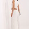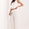 A women’s set consisting of a vest and trousers is an elegant and versatile proposal that will work well in everyday stylizations, for work, as well as for formal occasions or parties. The combination of a classic cut with a modern fit creates a comfortable yet stylish ensemble. The trousers with long, wide legs are made of a blend of polyester, viscose, and elastane, ensuring comfort, lightness, and subtle elasticity. Pleating along the entire length and an elastic waistband guarantee a comfortable fit to the silhouette and freedom of movement. The sleeveless double-breasted vest is finished with a collar and buttoned, and subtle pleating on the back adds elegance and original character. The smooth pattern of the entire set gives it versatility and a timeless style. This is the perfect set for women who appreciate elegance, comfort, and modern design, suitable for many situations from work to social gatherings to more formal occasions.