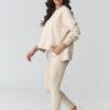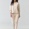 Stylish women’s tracksuit set is the perfect combination of comfort and modern design. The set consists of a loose oversized sweatshirt with a longer back and fitted pants with seams that beautifully accentuate the silhouette. It is an excellent choice for both everyday wear and casual urban styling. The sweatshirt has a classic, high neckline and dropped shoulder line, giving it a trendy, casual character. Elastic cuffs provide comfort and a good fit. The pants are designed with comfort in mind, featuring tapered legs and practical pockets that enhance the functionality of the set. The tracksuit set is perfect for a walk, shopping, travel, or as stylish homewear. Just pair it with your favorite sneakers or athletic shoes to create a fashionable, comfortable look.