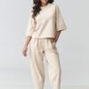 Stylish women’s tracksuit set is the perfect choice for women who value comfort and a trendy look in their everyday stylings. The set consists of a loose, oversized short-sleeved blouse and comfortable pants with an elastic waist and pockets, which provide freedom of movement and excellent fit to the silhouette. This fashionable casual set will work well for a walk, shopping, or casual meetings. The modern cut emphasizes the feminine silhouette while guaranteeing maximum comfort for all-day wear. It is an excellent choice for women looking for a combination of style and functionality. Thanks to its versatile cut, the women’s tracksuit set pairs perfectly with sneakers, creating a trendy and comfortable outfit for any occasion. It is a must-have in the wardrobe of every woman who values premium women’s clothing, comfort, and timeless design.
