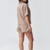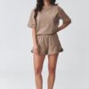 Stylish women’s set with shorts is the perfect choice for women who value comfort and modern, minimalist style. The set consists of a loose-fitting shirt and comfortable shorts with an elastic waist, creating a cohesive and timeless look. This summer women’s set will work perfectly for everyday walks, shopping, a holiday trip or as a comfortable home outfit. Thanks to its versatile design, you can wear it as a complete outfit or mix and match the pieces separately to create various outfits. The simple-cut shirt provides freedom of movement and comfort, while the shorts with a comfortable waistband perfectly fit the silhouette. This trendy casual women’s set combines functionality with current trends. If you are looking for a comfortable and stylish solution for warmer days, this women’s summer set will be an excellent choice. It is also a great alternative to a classic tracksuit – light, breathable, and extremely comfortable.