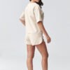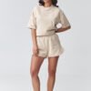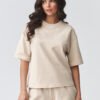 Stylish women’s set with shorts is the perfect choice for women who value comfort and modern, minimalist style. The set consists of a loose-fitting shirt and comfortable shorts with an elastic waist, creating a coherent and timeless look. This summer women’s set will work perfectly for everyday wear, a walk, shopping, a vacation trip, or as a comfortable home outfit. Thanks to its universal cut, you can wear it as a ready-made outfit or mix and match the pieces separately to create various outfits. The simple-cut shirt ensures freedom of movement and comfort, while the shorts with a comfortable waistband perfectly fit the silhouette. This trendy casual women’s set combines functionality with current trends. If you are looking for a comfortable and stylish solution for warmer days, this women’s summer set will be an excellent choice. It is also a great alternative to classic tracksuits, light, airy, and extremely comfortable.