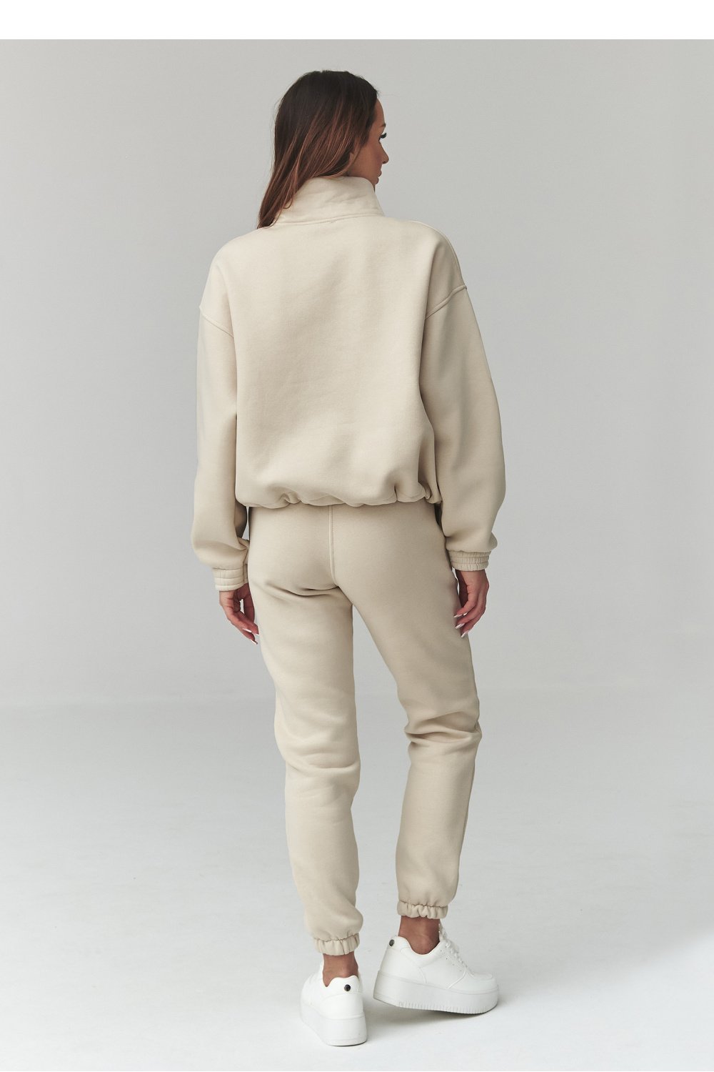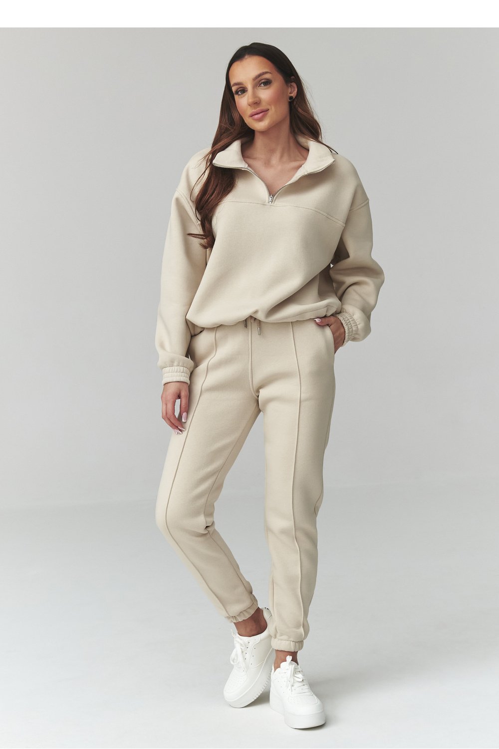 Stylish tracksuit set is the perfect combination of comfort and modern design. The set includes an oversized sweatshirt with delicate embroidery and loose-fitting sweat shorts. It is an excellent choice for women who appreciate a fashionable women’s set for everyday wear, both for relaxing at home and going out in the city. The women’s sweatshirt is designed in a loose fit, providing maximum comfort and freedom of movement. The dropped shoulder line and carefully finished cuffs emphasize its casual character. The subtle embroidery on the front adds minimalist elegance, fitting into current trends. High-waisted sweat shorts guarantee comfort and a great fit to the silhouette. The elastic waistband and soft, pleasant to the touch fabric make the set perfect as a comfortable women’s tracksuit for warmer days. This oversized tracksuit set is a must-have in every woman’s wardrobe, looking for versatile and timeless solutions. It pairs well with sneakers, creating a trendy sporty look, but also looks great in a more casual outfit. Choose a comfortable women’s set and enjoy style without compromise.
