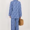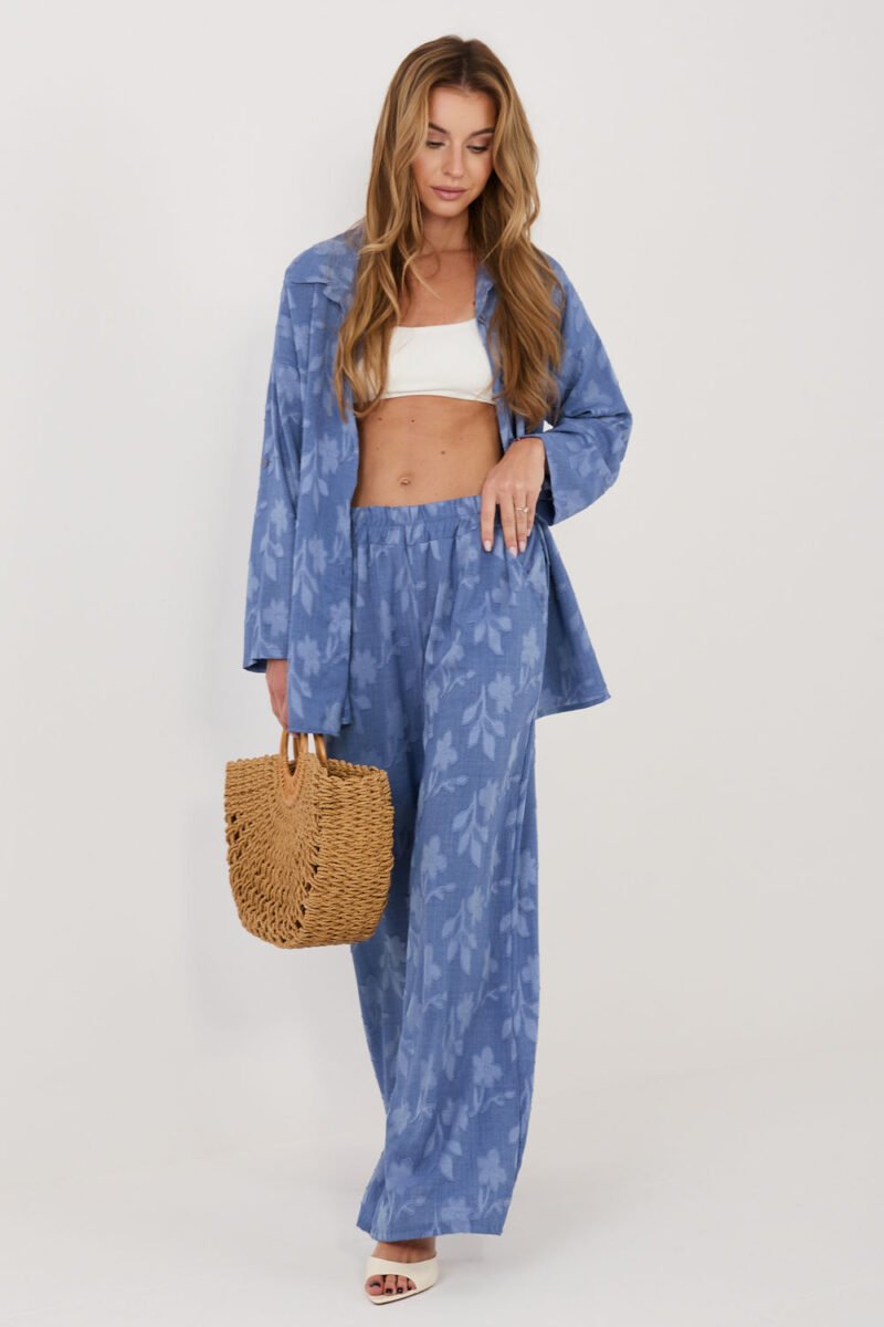 Women’s set consisting of a shirt and pants is a stylish and comfortable option for everyday wear. It stands out with a diverse texture of the material, which gives the whole a modern and original character. The shirt with long sleeves, a classic collar, and button fastening looks elegant, yet casual, making it perfect for both casual and more structured stylizations. The pants with long legs have an elastic waistband with inserted rubber, which ensures comfortable fitting to the silhouette and comfort of wearing throughout the day. Additionally, they have practical, side slip pockets. The set made of a soft and pleasant to the touch blend of viscose and elastane guarantees lightness, flexibility, and freedom of movement. It is an ideal choice for women who value comfort combined with a fashionable look.