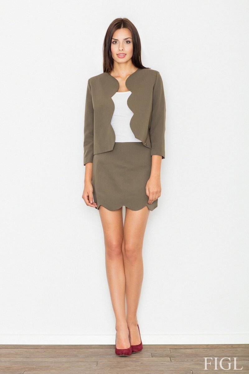 Unusual set consisting of a jacket and mini skirt. A jacket without a button with 3/4 sleeves, a mini skirt completes the whole. Perfect proposal for many occasions.