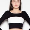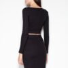 Cotton set. Long-sleeved crop blouse with a decorative belt in a contrasting colour and a classic cut pencil skirt.