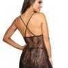 One hell of a sensual and lightweight babydoll chemise complete with latex thong. A delicate transparent pattern of richly decorated black lace covers the body, the top finished with shiny latex is an incredibly stimulating game of sensations. The chemise has adjustable crossed straps, which are non-removable. The chemise has no wires or underwire.