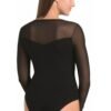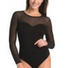 Women’s bodysuit in black made of high-quality airy and delicate viscose with the addition of elastic Lycra thread, combined at the neckline and arms with a transparent mesh, which perfectly wraps around the neckline and adheres to the arms. The bodysuit at the front on the bust is cut in the shape of a heart, and at the back in the shape of the letter V. Around the neck, the bodysuits are finished very aesthetically in a semicircle. At the crotch they are fastened with adjustable hooks, so you can more easily adjust them to your height. The bodysuits perfectly adhere to the silhouette and emphasize its advantages.
