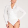 Elegant bodysuit with long sleeves and a wrap neckline. Made of elastic material, it perfectly fits the silhouette.