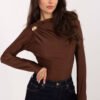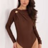 Elegant body is a stylish proposal for women who value elegance and comfort in one. The model impresses with a smooth, dominant pattern that gives it a timeless character and makes it perfect for both skirts and elegant trousers. Made of a blend of polyester and elastane, the body is stretchy, pleasant to the touch, and perfectly fits the silhouette. Standard length and long sleeves make it a universal choice for many occasions, and the boat neckline subtly emphasizes the shoulder line, adding elegance to the whole. The ruching on the front near the right shoulder, complemented by a metal decoration, adds a chic, jewelry-like accent. The body is fastened with hooks, ensuring comfort and stability when worn. Perfect for evening outings, elegant occasions, and stylish, well-thought-out outfits.