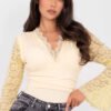 Elegant body made of a combination of polyester and elastane, combining comfort with refined style. A model of standard length with a sweetheart neckline emphasizes the silhouette and gives the whole a subtly feminine character. The long, flared lace sleeve adds lightness and elegance, and the decorative ruching on the front fabric is a stylish detail that distinguishes the body. The built-in, stiffened cups and practical hook fastening ensure high functionality, facilitating putting on and taking off. The dominant smooth pattern makes the body versatile and perfect for both special occasions and elegant everyday stylizations.