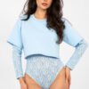 Two-layer body in a casual style is a combination of comfort and feminine aesthetics. The model stands out with a varied texture of the material, which gives the whole a modern character. Made of a combination of polyester, viscose, and elastane, the body is flexible, soft, and comfortable to wear. The body has a standard length and a classic, round neckline. Long, lace sleeves and a lace bottom layer add lightness and subtle elegance, while the outer layer in the form of a short-sleeved shirt creates the effect of a stylish, layered look. The model fastened with hooks ensures comfort and a good fit. It is an ideal proposition for everyday styling with both jeans and a skirt.