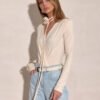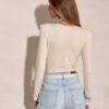 A long-sleeved bodysuit with a wrap neckline is the quintessence of feminine style and elegance. Made of soft, stretchy material, it perfectly fits the silhouette, emphasizing its assets. The wrap cut subtly exposes the neckline, adding chic and lightness to the whole look. A belt with a fabric rose is included in the set, which is a unique, romantic accent that beautifully complements the styling. Perfect for elegant outings, dinners, or special occasions. The bodysuit is designed and made in Poland.