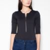 Fitted, feminine, bodysuit with 3/4 sleeves. Fastened with a decorative zipper. Ideal for matching jeans.