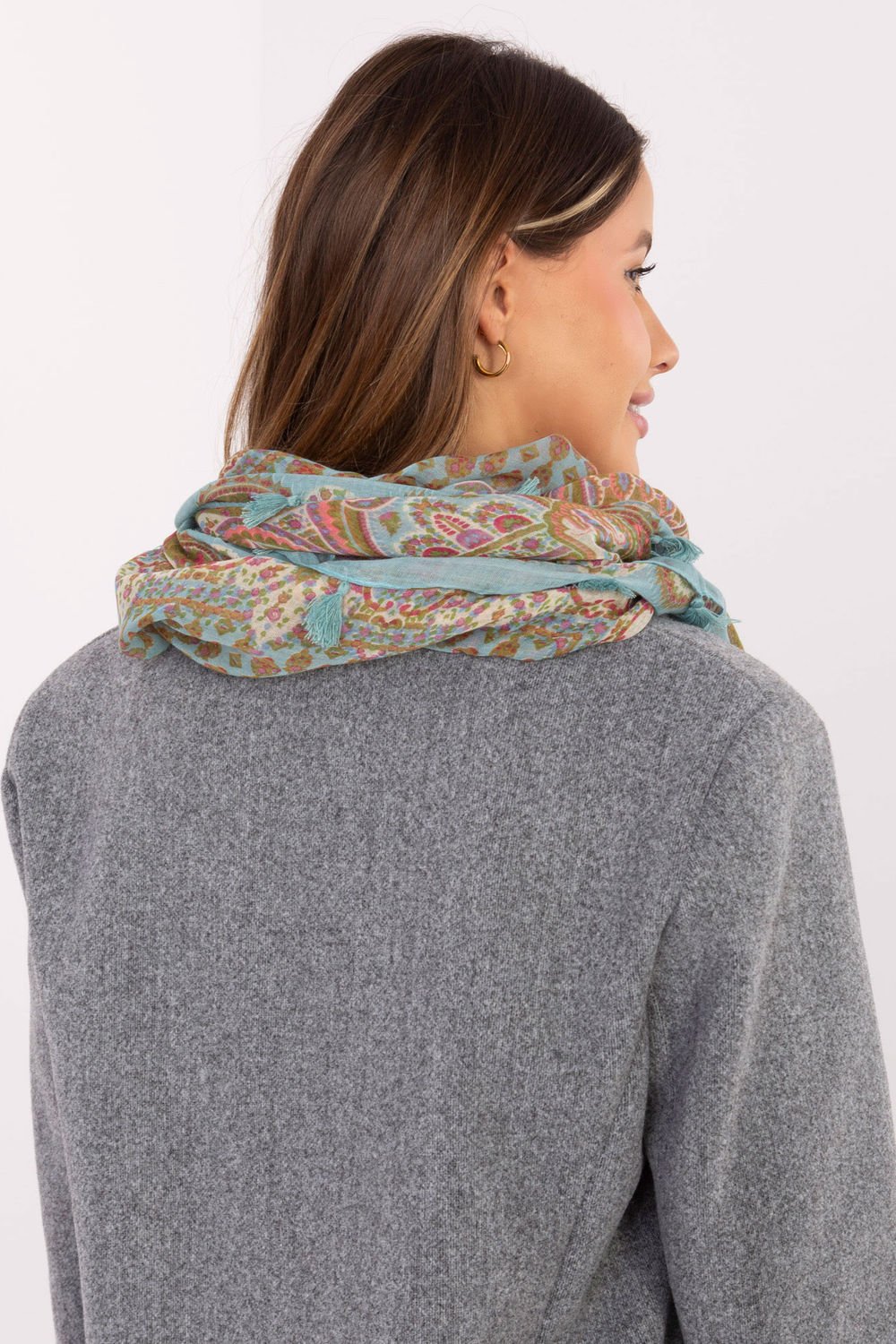 This long scarf with decorative stripes and interesting patterns is the perfect addition to your autumn-winter closet. Made of durable polyester, it is not only practical, but also stylish. Tassels add subtlety and lightness to it. The length of the scarf allows for a variety of ways to wear it, you can wrap it around your neck, leave it loose on your shoulders or use it as an extra layer on colder days. No matter how you wear it, this scarf will be a stylish addition to your closet, adding character and warmth.