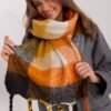 This long colorful plaid scarf is the perfect addition to your fall and winter closet. Made of durable polyester, it is not only practical, but also stylish. The tassels add subtlety and lightness to it. The length of the scarf allows for a variety of ways to wear it, you can wrap it around your neck, leave it loose on your shoulders or use it as an extra layer on colder days. No matter how you wear it, this scarf will be a stylish addition to your closet, adding character and warmth.