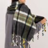 Elegant 182 cm long polyester scarf with check pattern, perfect for colder days. Made of high-quality material, it provides warmth and comfort. Decorative tassels add a fashionable, stylish touch that enriches any winter styling. This versatile scarf combines functionality with elegance, making it a perfect addition to a wide variety of outfits.