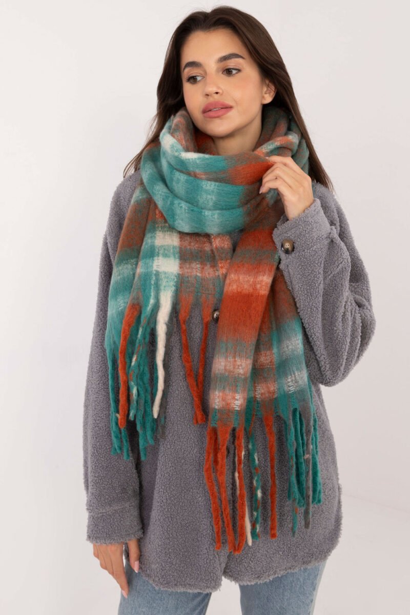Elegant scarf measuring 186 cm made of polyester in a classic checkered pattern, perfect for cooler days. Made of high-quality material, it provides warmth and comfort. Decorative fringes add a fashionable, stylish accent that enhances any winter outfit. This versatile scarf combines functionality with elegance, making it a perfect addition to many different outfits.