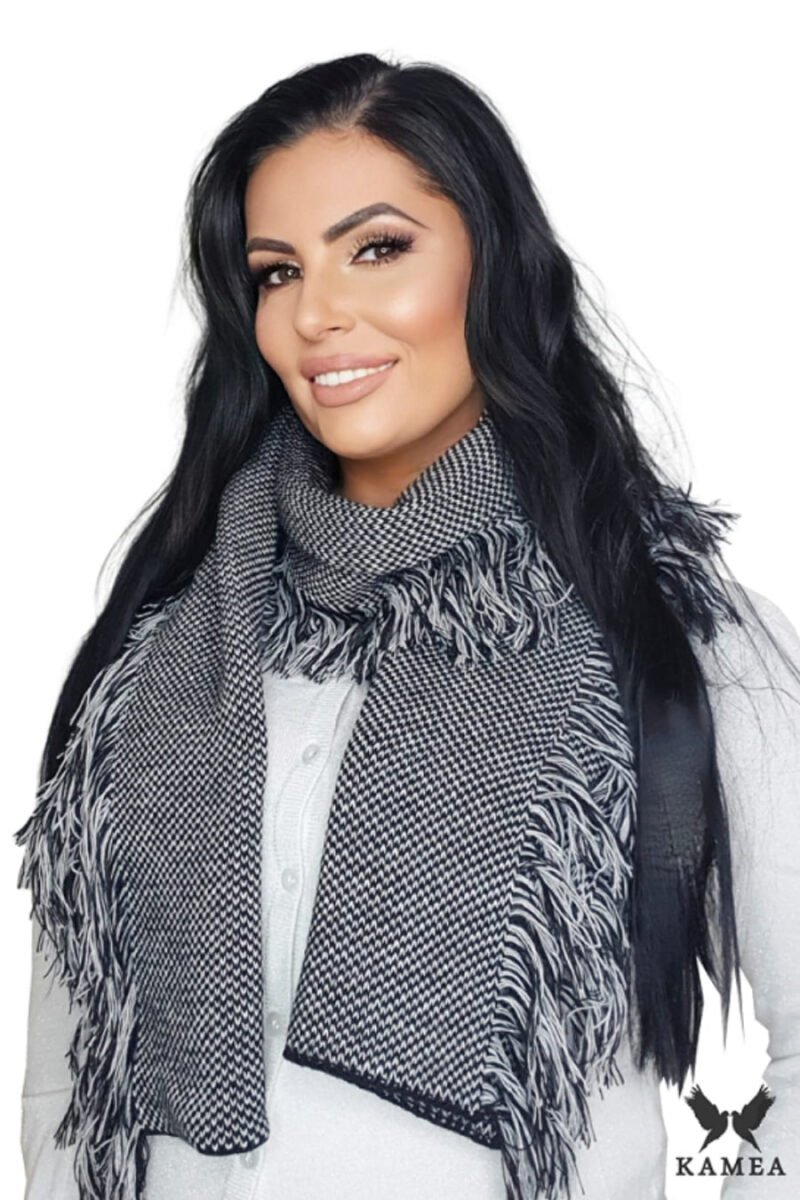 ALDURA women’s scarf in black is a phenomenal accessory from the renowned brand KAMEA. Made of high-quality yarn, it is extremely soft and pleasant to the touch. The scarf is decorated with an elegant waffle pattern and fringes at the ends, giving it a unique character. Perfect for cool autumn-winter days. The product is available in several color variations. The scarf was produced in Poland, guaranteeing its high quality. Add a touch of class to your wardrobe with this unique accessory.