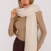 A long, simple scarf made of soft thickly knitted yarn that pleasantly envelops and provides warmth on cold days. The classic braided pattern gives it a timeless character and a subtle decorative accent. Thanks to its wide 40 cm form and impressive length of 190 cm, it can be freely wrapped around the neck or worn loosely for a more elegant effect.