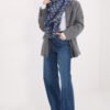 Scarf made of high-quality blend of viscose and wool delights with a pleasant to the touch structure and elegant finish. Its geometric, dominant pattern gives the whole a modern character. The model has impressive dimensions of 148 × 148 cm, so it can be worn in many ways, both as a classic scarf and a stylish shawl. Additional charm is added by delicate fringes, which emphasize the lightness and freedom of styling.