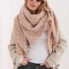 Scarf made of high-quality blend of viscose and wool delights with a pleasant to the touch structure and elegant finish. Its geometric, dominant pattern gives the whole a modern character. The model has impressive dimensions of 148 × 148 cm, so it can be worn in many ways, both as a classic scarf and a stylish shawl. Additional charm is added by delicate fringes, which emphasize the lightness and freedom of styling.