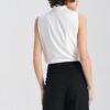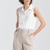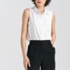 The classic women’s shirt with a regular cut delights with its simplicity and elegance, being an indispensable item in a woman’s closet. It is made of delicate viscose material, providing a feeling of softness and comfort of wearing all day long. Its classic collar adds a sophisticated touch to the overall look, emphasizing elegance and timeless style. The sleeveless design gives the shirt a light and fresh feel, perfect for warm days or summer gatherings. The practical button closure located on the front makes it easy to put on and ensures comfortable wear. This shirt will be perfect as a versatile piece of clothing, adding chic and class to any styling, whether casual or more formal.