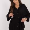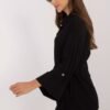 Casual women’s shirt, ideal for everyday wear and for work. Made of smooth, monochromatic material, the dominant component of which is cotton, it provides comfort and breathability. It has a classic collar and 3/4-length sleeves, which adds to its casual yet stylish character. The standard-length, button-down shirt additionally features a tie belt, which accentuates the waist and adds a feminine touch. It is a versatile proposition, ideal for casual styling, combining comfort with classic style.