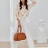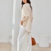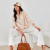 Oversized shirt with long sleeves finished with decorative buttoned cuffs. It has an asymmetrical cut, buttoned.
