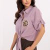 Stylish women’s shirt in a casual style, perfect for everyday wear. Made of breathable, natural cotton, it ensures comfort throughout the day. The short length and tie at the bottom give it a light and girly character, while the 3/4 sleeve works great on warmer days. The shirt is buttoned up and equipped with a classic collar, giving it a universal, relaxed look. At chest height, there is a practical pocket decorated with a subtle print, which provides a delicate yet fashionable accent.