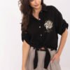 Stylish women’s shirt in a casual style, perfect for everyday wear. Made of breathable, natural cotton, it provides comfort throughout the day. The short length and tie at the bottom give it a light and girlish character, while the 3/4 sleeve is perfect for warmer days. The shirt is buttoned up and equipped with a classic collar, giving it a universal, casual look. At chest height, there is a practical pocket decorated with a subtle print, which adds a delicate yet fashionable touch.