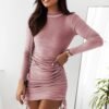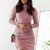 Lana is a sensual proposition for an elegant, but also sexy styling. Made of velvet, pleasant to the touch, stretch velour. The dress with a fitted cut surprises with its simplicity, a low collar under the neck. At the bottom of the dress from the waist, one of the timeless hits creases, which you love 🙂 Thanks to the sewn in straps you can adjust the length of the dress yourself, you can wear it as a mini, a bit longer before the knee or even midi version. You can also shorten only one of the sides, using the asymmetry. Full discretion! Dress designed and sewn in Poland.