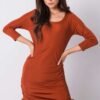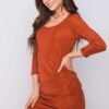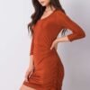 Brick dress with pleats. Dress with 3/4 sleeves.