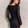 The sequin envelope cut dress is absolutely captivating and chic. It has a sewn-in waist belt, thanks to which it emphasizes the silhouette nicely and easily adapts to the figure regardless of size. Fastened at the back with a covered zipper. A stunningly charming mini dress with sequins and an overlap neckline that beautifully emphasizes the bust. The bottom of the dress is overlapped, thanks to which it phenomenally exposes and elongates the legs. The length is before the knee. Thanks to the careful finishing, elastic lining and hemmed edges, you can be sure that sequins will not scratch the skin and pull the tights. You can party all night long in such a creation. A sequin dress is perfect for many occasions. Sequins shimmer beautifully when exposed to light, so you can easily stand out from the crowd. The product is made and sewn in Poland.