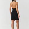 If you are looking for a dress that will perfectly emphasize your silhouette and make you feel exceptional, here it is. Dress M912 is femininity in its purest form. The deep halter neckline, draping along the entire length, and sensually exposed back create a spectacular effect that no one will pass by indifferently. Made of elastic, form-fitting material, it beautifully lays on the body and shapes the figure. Decorated with a fancy front tie, subtly accentuating the waist and adding a unique character to the dress. Classic black – timeless, elegant, and always in style. Dress M912 is more than just a little black dress, it is a choice of style, courage, and femininity.