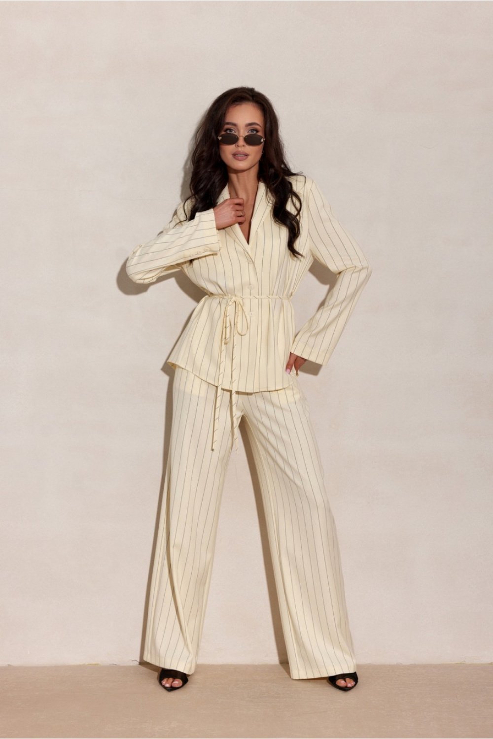 The dress made of elastic material combines comfort with modern elegance. Long sleeves and a subtle V-neck emphasize the silhouette, while ruching on the front adds lightness and an impressive character. The smooth back gives the outfit a classic look, while shoulder pads introduce a fashionable, structural accent. The dress is perfect for evening outings, elegant meetings, and special occasions. Designed and sewn in Poland.
