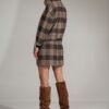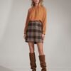 Trapeze mini skirt in plaid, with darts at the front and back, no pockets, fastened at the back with a covered zip, unlined.