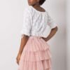 Tulle skirt with ruffles is an elegant proposal that will add lightness and feminine charm to any styling. Made of high-quality polyester and viscose blend, it ensures comfort and beautifully fits the silhouette. The skirt has a smooth pattern and a mini length that emphasizes the legs and gives the whole outfit a subtle but distinctive character. Layers of tulle with delicate ruffles create a spectacular finish, perfect for special occasions such as parties, weddings, or evening outings. The model is equipped with a lining that guarantees comfort and provides full freedom of movement. The lack of fastening makes the skirt easy to put on and wear, and the elastic waistband (if present) further enhances comfort. This is an excellent choice for women who appreciate elegance in a fashionable edition.