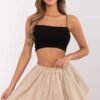 Casual ball skirt with sewn-in shorts is the perfect combination of style and comfort for everyday wear. Made of breathable viscose with added elastane, it ensures comfort and fits the silhouette perfectly. The smooth design makes it easy to pair with various wardrobe items. An elastic band sewn into the waist guarantees a comfortable fit, and the mini length adds a girlish charm to it. An excellent proposition for everyday stylizations, combining functionality with a trendy look.