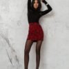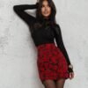 Our red floral skirt is a combination of elegance and comfort. Made of high-quality viscose, a material known for its softness and breathability, it fits nicely on the silhouette and provides comfort throughout the day. This mini skirt model is not overly short, it has a modest, feminine length, making it suitable for a date, work, or meeting with friends. The sensual red rose print on a black background adds a romantic character to the outfit, and the classic, simple cut beautifully accentuates the legs and waist. Skirt designed and sewn in Poland.