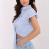 Casual women’s checked shirt is a stylish and comfortable proposition for everyday stylizations. Made of a blend of cotton and polyurethane, it combines natural breathability with delicate elasticity, providing wearing comfort. Its short length, short sleeves, and decorative tie at the bottom give it lightness and a youthful character. The classic collar, button fastening, and chest pocket emphasize its practical yet fashionable style. The check pattern makes the shirt look great with both jeans and shorts.