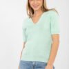 Women’s casual sweater is a universal proposal perfect for both everyday wear and work. Made of a pleasant to the touch blend of viscose and polyester, it provides comfort and a good fit to the silhouette. Its smooth pattern gives it a timeless character, making it easy to combine with various wardrobe items. A standard-length model, with short sleeves and a classic V-neck, will work perfectly on warmer days or as a base for a blazer or cardigan. The lack of fastening emphasizes the minimalist style and makes the sweater comfortable and easy to use. An ideal choice for the office, meetings, and daily stylings.
