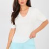 Women’s casual sweater is a versatile proposal perfect for both everyday wear and work. Made of a pleasant to the touch blend of viscose and polyester, it ensures comfort and a good fit to the silhouette. The smooth pattern gives it a timeless character, making it easy to match with various wardrobe elements. A standard length model, with short sleeves and a classic V-neck, will work perfectly on warmer days or as a base for a blazer or cardigan. The lack of fastening emphasizes the minimalist style and makes the sweater comfortable and easy to use. An ideal choice for the office, meetings, and daily stylizations.