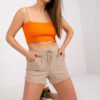 Women’s shorts with elastic band and waist tie. The shorts have slip pockets.