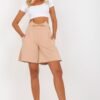Women’s shorts with wide legs, elastic waistband, slip pockets on the sides. On the front a decorative chain.