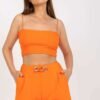 Women’s shorts with high rise and elastic waistband. On the sides slip pockets, on the front an interesting decoration.