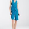 Relaxed fit shorts made from a blend of viscose, linen, and cotton combine comfort and style. They feature a mid-rise waist and straight knee-length legs finished with an elegant cuff. The front zip and button closure ensure easy wearing. Classic front pockets and faux back pockets add a timeless look and functionality to the shorts. Perfect for summer days, these shorts will be a great choice for both casual outings and more formal occasions.