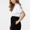 Light shorts with a loose cut are the perfect choice for warm days. The high waist with a gathered waist beautifully emphasizes the silhouette, and the tie at the waist adds a feminine touch to the whole. Looser legs provide comfort and freedom of movement, while practical pockets increase wearing comfort. The model will work great in everyday summer stylizations.